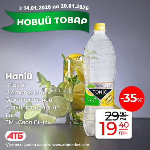У мережі супермаркетів АТБ з'явилася новинка — безалкогольний напій «Flavor» зі смаком «Lemon & Lime». Продукт представлений як освіжаючий варіант для споживачів, що шукають нові смаки у відділі напоїв.