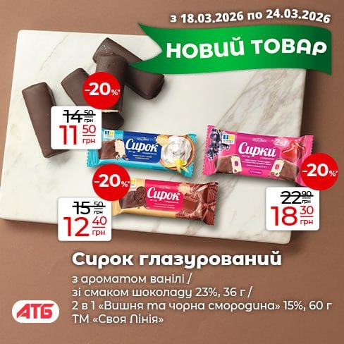 Українська торговельна мережа АТБ розширила асортимент кондитерських виробів, представивши новий глазурований сирок з ароматом ванілі. Новинка вже з'явилася на полицях магазинів по всій країні.