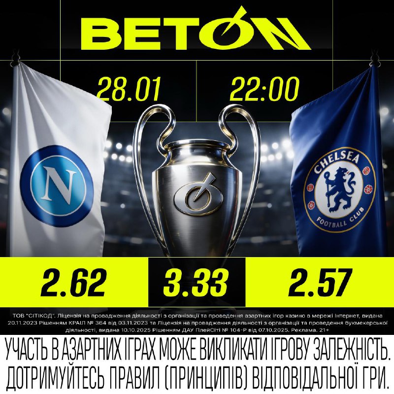 Завтра, 28 січня, відбудеться довгоочікуване протистояння між італійським «Наполі» та англійським «Челсі». Матч розпочнеться о 22:00, привертаючи увагу фанатів з усього світу.