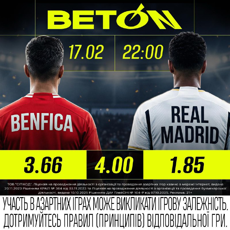 У межах розіграшу Ліги чемпіонів відбудеться футбольний поєдинок між лісабонською «Бенфікою» та мадридським «Реалом». Матч заплановано на 17 лютого, що викликає значний інтерес у вболівальників через участь топ-клубів Європи.