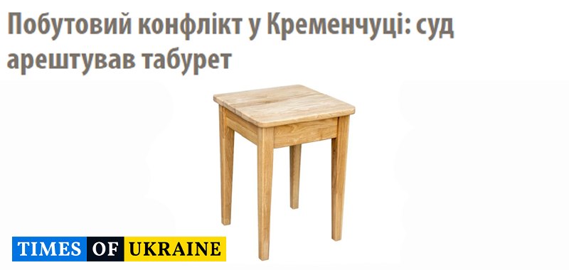 У Кременчуці стався курйозний судовий випадок — суд офіційно наклав арешт на звичайний табурет. Слідство вважає цей предмет важливим речовим доказом у кримінальному провадженні.