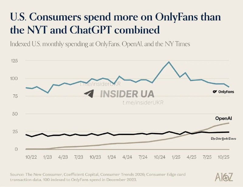 Споживчі витрати в США: OnlyFans обходить ChatGPT 📱💰