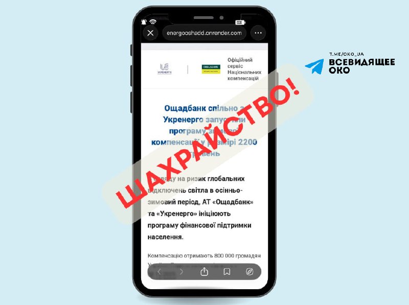 У мережі з'явилася нова шахрайська схема, де зловмисники обіцяють українцям виплату 2200 гривень від імені компанії «Укренерго». Громадян закликають бути пильними, не переходити за сумнівними посиланнями та не надавати персональні дані.