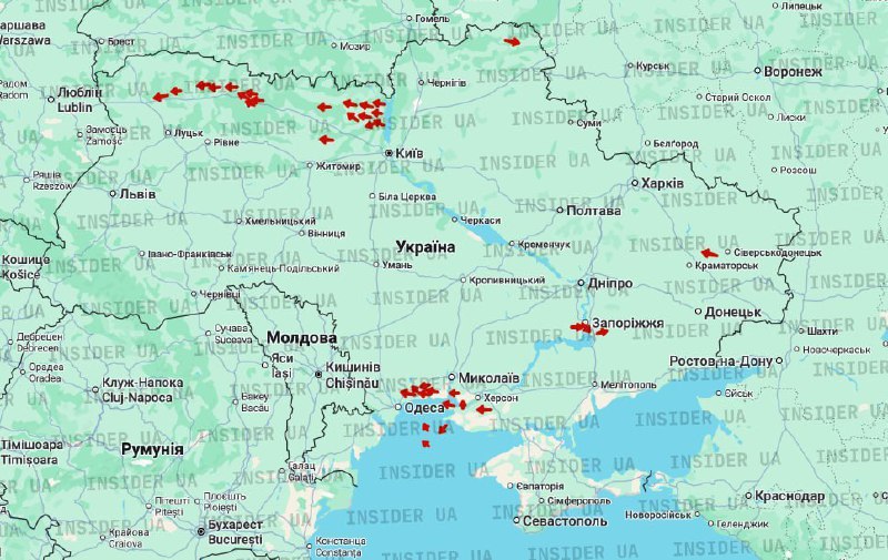 Повітряні сили ЗСУ попередили про масовану повітряну атаку. Зафіксовано зліт стратегічної авіації РФ, зокрема Ту-95МС та Ту-160, а також загрозу пусків крилатих ракет «Калібр» з акваторії Чорного моря. Одночасно декілька груп ударних безпілотників рухаються у напрямку Дніпра, Кропивницького та Київщини.