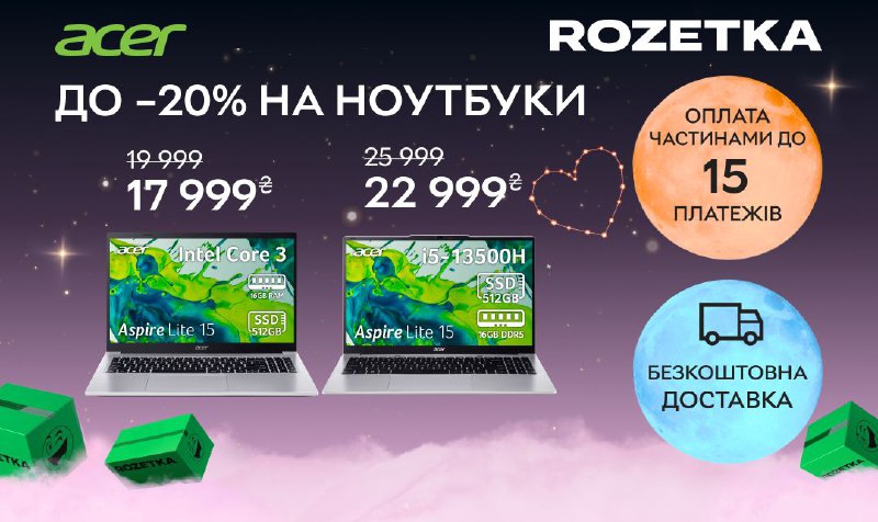 Популярний український маркетплейс Rozetka оголосив про проведення акції до Дня всіх закоханих. Клієнти можуть придбати ноутбуки бренду Acer зі знижкою до 20%.