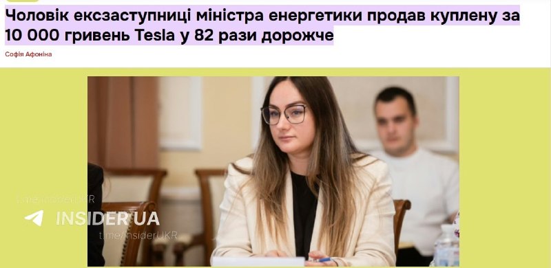 У мережі з'явилася інформація про придбання елітного електромобіля Tesla чоловіком колишньої заступниці міністра енергетики України Світлани Гринчук. Покупка відбулася на фоні активних обговорень статків посадовців та прозорості їхніх декларацій.