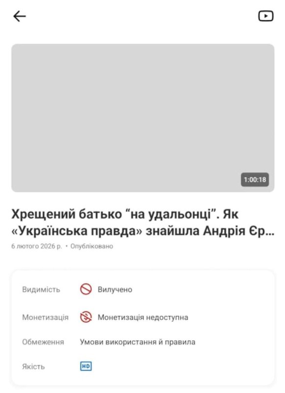 Відеохостинг YouTube видалив резонансне розслідування видання «Українська правда». Причиною стали скарги, подані на відео, що викликало хвилю обурення серед медіаспільноти.